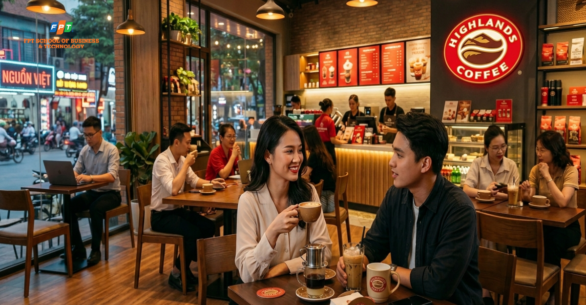 Trong bối cảnh thị trường cà phê Việt Nam cạnh tranh khốc liệt với sự góp mặt của nhiều thương hiệu quốc tế như Starbucks, The Coffee House hay Phúc Long, Highlands Coffee vẫn giữ vững vị thế dẫn đầu với hơn 600 cửa hàng trên toàn quốc. Điều gì đã tạo nên thành công vượt trội này? Câu trả lời nằm ở chiến lược marketing của Highlands Coffee – một chiến lược được xây dựng bài bản, sáng tạo và luôn lấy khách hàng làm trung tâm. Bài viết này sẽ phân tích sâu những yếu tố then chốt giúp Highlands Coffee trở thành biểu tượng của ngành cà phê Việt Nam, đồng thời rút ra những bài học quý giá cho các doanh nghiệp trong nước.