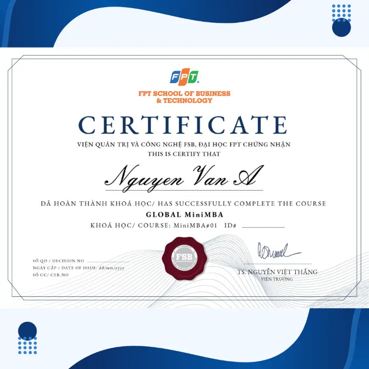 Khóa học Mini MBA tại Hà Nội không chỉ là hành trình nâng cao kiến thức mà còn là cơ hội để các nhà lãnh đạo khám phá và phát triển tiềm năng của bản thân. Trong bối cảnh kinh doanh ngày càng phức tạp và cạnh tranh khốc liệt, việc trang bị cho mình một nền tảng quản trị vững chắc thông qua Mini MBA là quyết định đầu tư khôn ngoan cho tương lai. Với sự đa dạng của các chương trình chất lượng cao tại Hà Nội, mỗi nhà lãnh đạo đều có thể tìm thấy khóa học phù hợp với nhu cầu và mục tiêu phát triển của mình. Hãy bắt đầu hành trình học tập này ngay hôm nay để không bỏ lỡ cơ hội nâng tầm sự nghiệp và đóng góp hiệu quả hơn cho sự phát triển của doanh nghiệp. Đặc biệt, chương trình Global Mini MBA của FPT đang là lựa chọn được nhiều lãnh đạo tại Hà Nội tin tưởng nhờ chất lượng đào tạo vượt trội và tính ứng dụng cao trong thực tiễn quản trị doanh nghiệp Việt Nam.