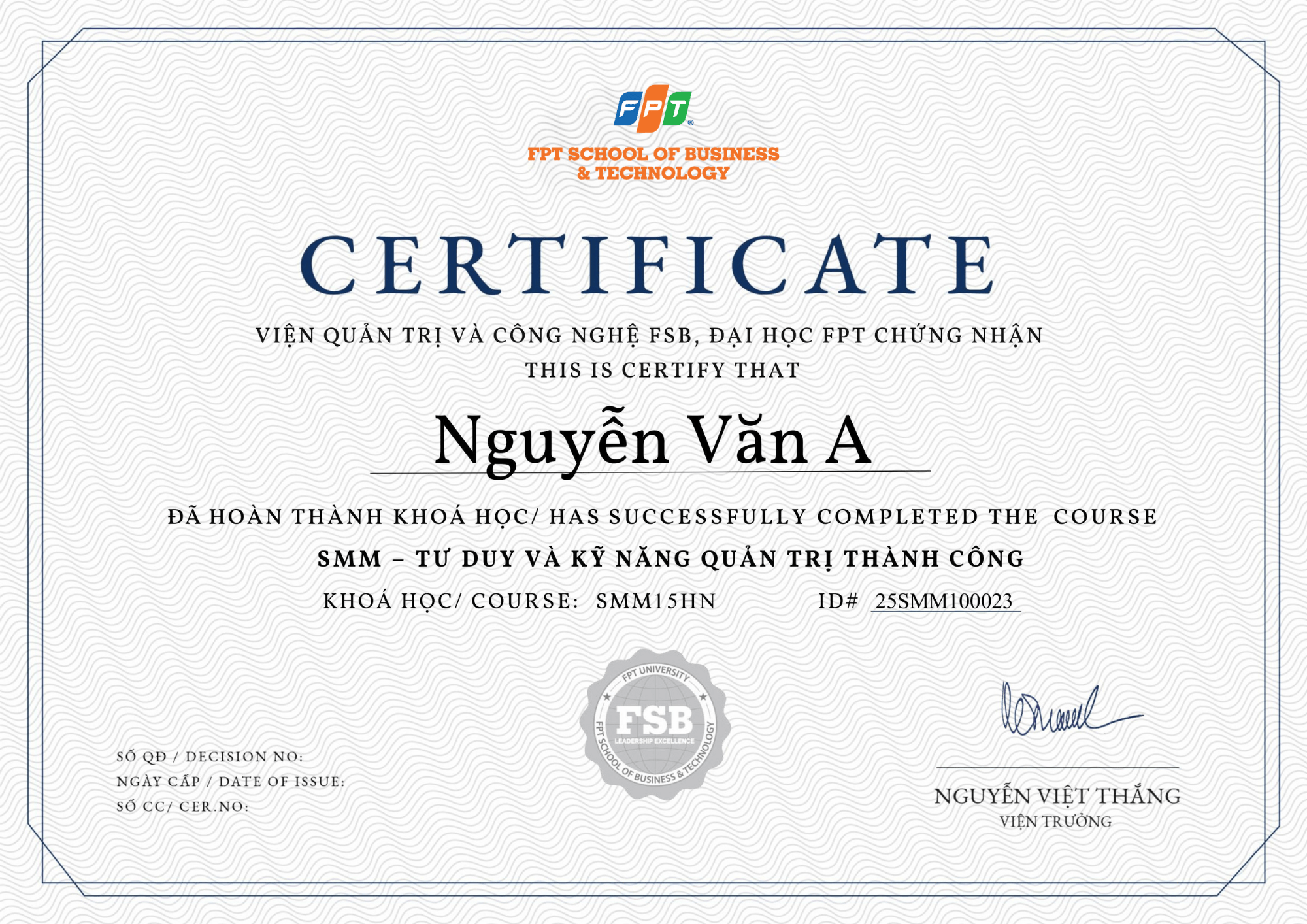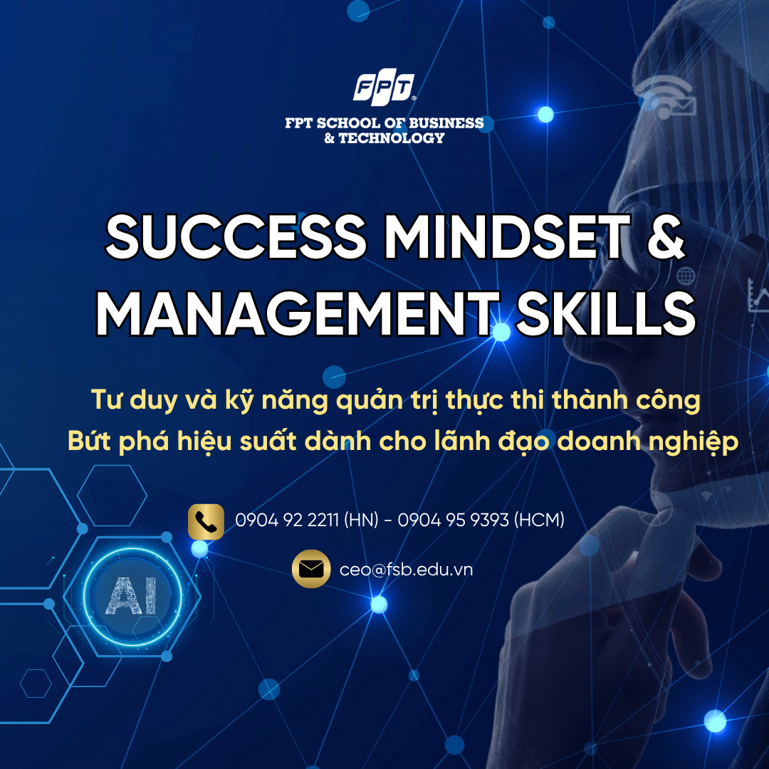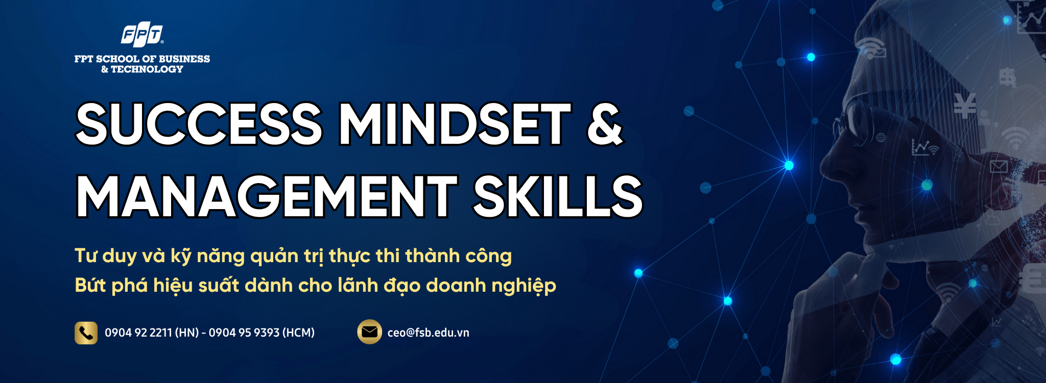 - Khóa học Success Mindset & Management Skills for Business Leaders (Tư duy và kỹ năng Quản trị thực thi thành công – Bứt phá hiệu suất dành cho Lãnh đạo doanh nghiệp) được thiết kế để giải quyết trực tiếp khoảng trống này. Chương trình không chỉ cung cấp bộ kỹ năng quản trị nền tảng với tính thực chiến và áp dụng ngay: lập kế hoạch, quản trị hiệu suất, tuyển & giữ người, huấn luyện, giải quyết vấn đề và đàm phán, mà còn hướng dẫn cách tích hợp AI như một “đồng đội tác nghiệp” trong công việc hằng ngày. Đây không chỉ là một chương trình đào tạo kỹ năng quản trị, mà còn là hành trình giúp lãnh đạo làm chủ công cụ AI, củng cố nền tảng quản trị và bứt phá hiệu suất để đưa doanh nghiệp vươn xa hơn.